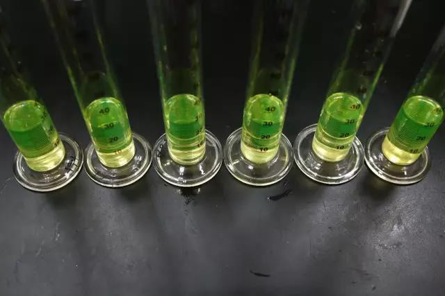 將6個(gè)樣品杯中的混合液體分別倒入6個(gè)量筒,兌水進(jìn)行20倍開(kāi)稀。將所有量筒放入振蕩儀中進(jìn)行2小時(shí)振蕩搖晃,取出觀測(cè)消泡效果。