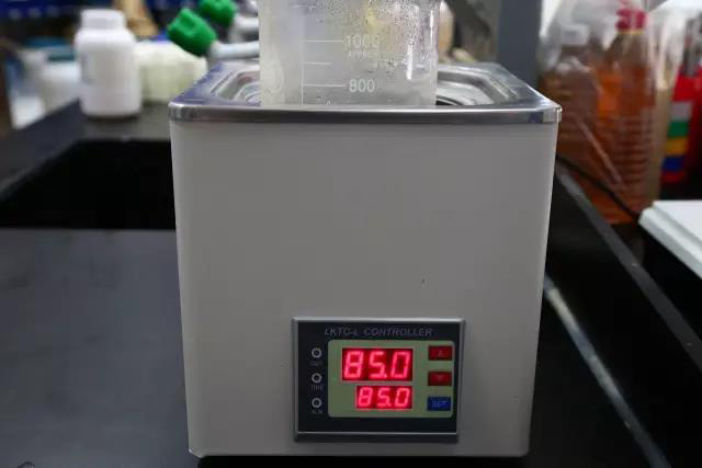 李工切取適量的果凍膠樣品,放入燒杯中。將燒杯放入水浴鍋中進行85℃的加熱,同時進行60r/min機械攪拌。