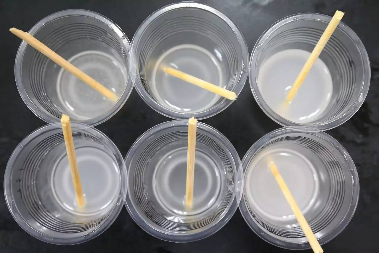 機(jī)械攪拌均勻后,靜置1小時(shí),觀察混合液體的透明度情況,綜合對(duì)比。
